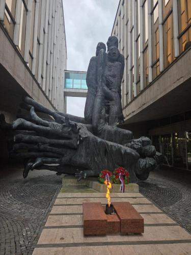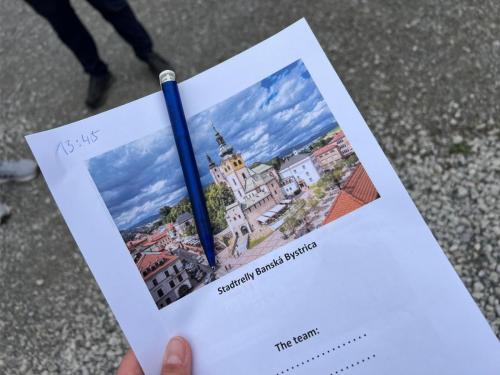 We started the second day at 7:15 a.m. with breakfast so that we could leave for school at 8 a.m. In the afternoon, we got to know Banská Bystrica properly during a city rally. From the city park to the market square to the Museum of the Slovak National Uprising with its eternal flame (Věčný oheň).