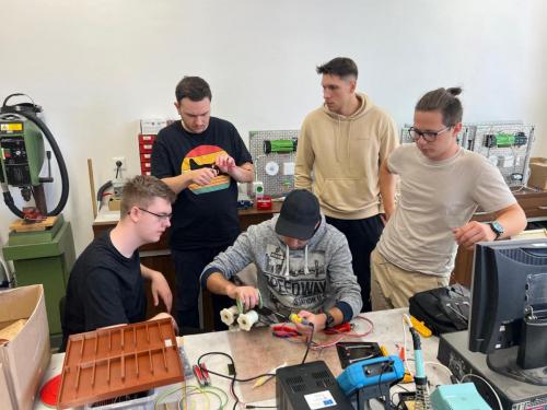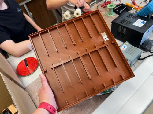 Nach den erfolgreichen Tests konnten die vier LED-Panels nun zu einer 32×32-Matrix verlötet und angesteuert werden. Das nächste Ziel der Gruppe ist es, ein Programm zu entwickeln, mit dem Pixelbilder auf der Matrix dargestellt werden können. Nachdem die Maße final angepasst wurden, wurde außerdem der 3D-Druck des ersten Controllers in Auftrag gegeben.