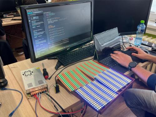 After the successful tests, the four LED panels were soldered together into a 32×32 matrix and put into operation. The group’s next goal is to develop a program that can display pixel images on the matrix. Once the dimensions were finalized, the first controller was also sent for 3D printing.