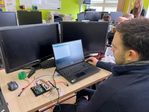 As in the previous days, the 3D models printed overnight were tested and set up. The controller of the LED Matrix team was finally available in physical form. However, it wasn’t entirely flawless: the socket for the joystick had been printed too high, but this could be quickly adjusted with a utility knife.